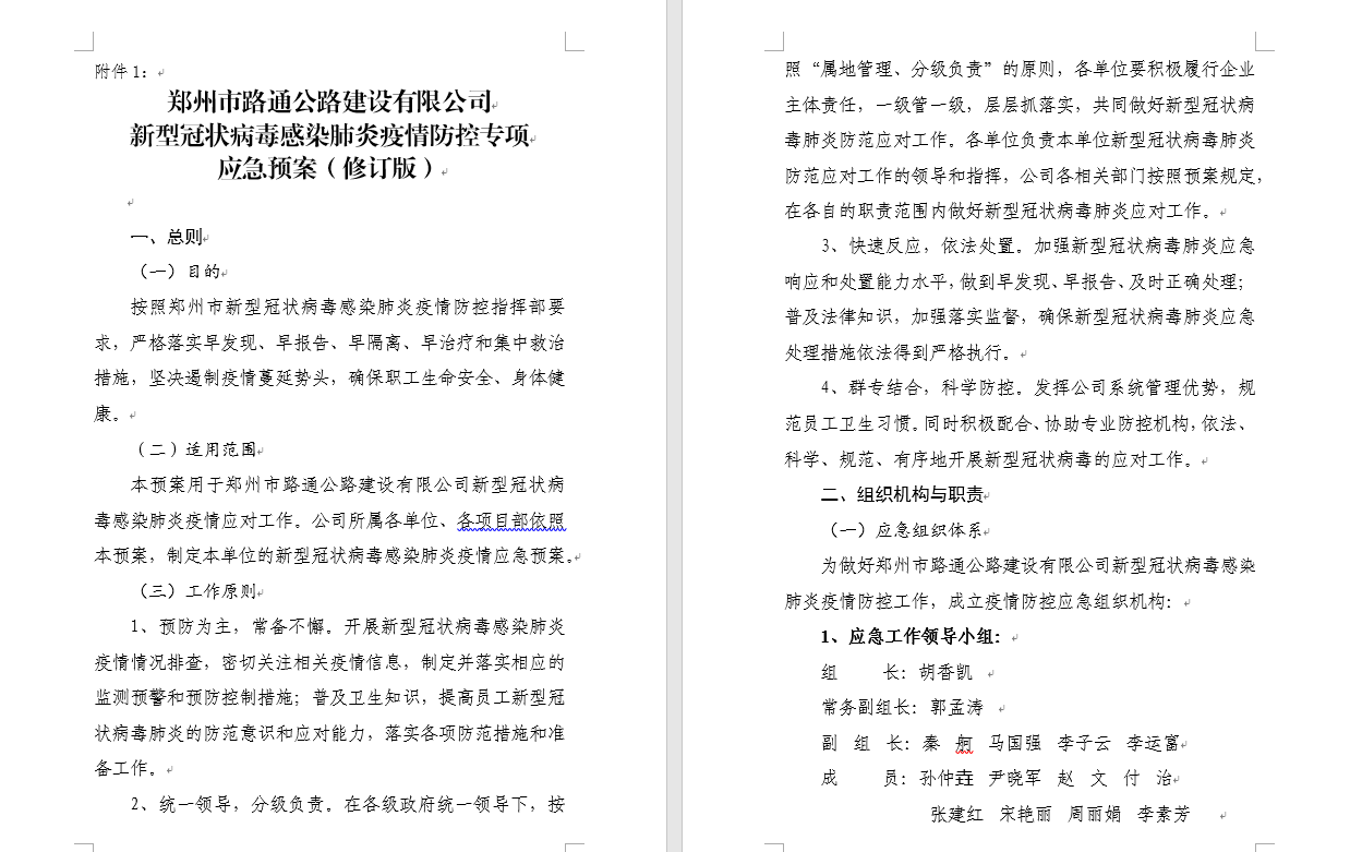 鄭州市路通公路建設(shè)有限公司新型冠狀病毒感染肺炎疫情防控專項(xiàng)應(yīng)急預(yù)案(修訂版)