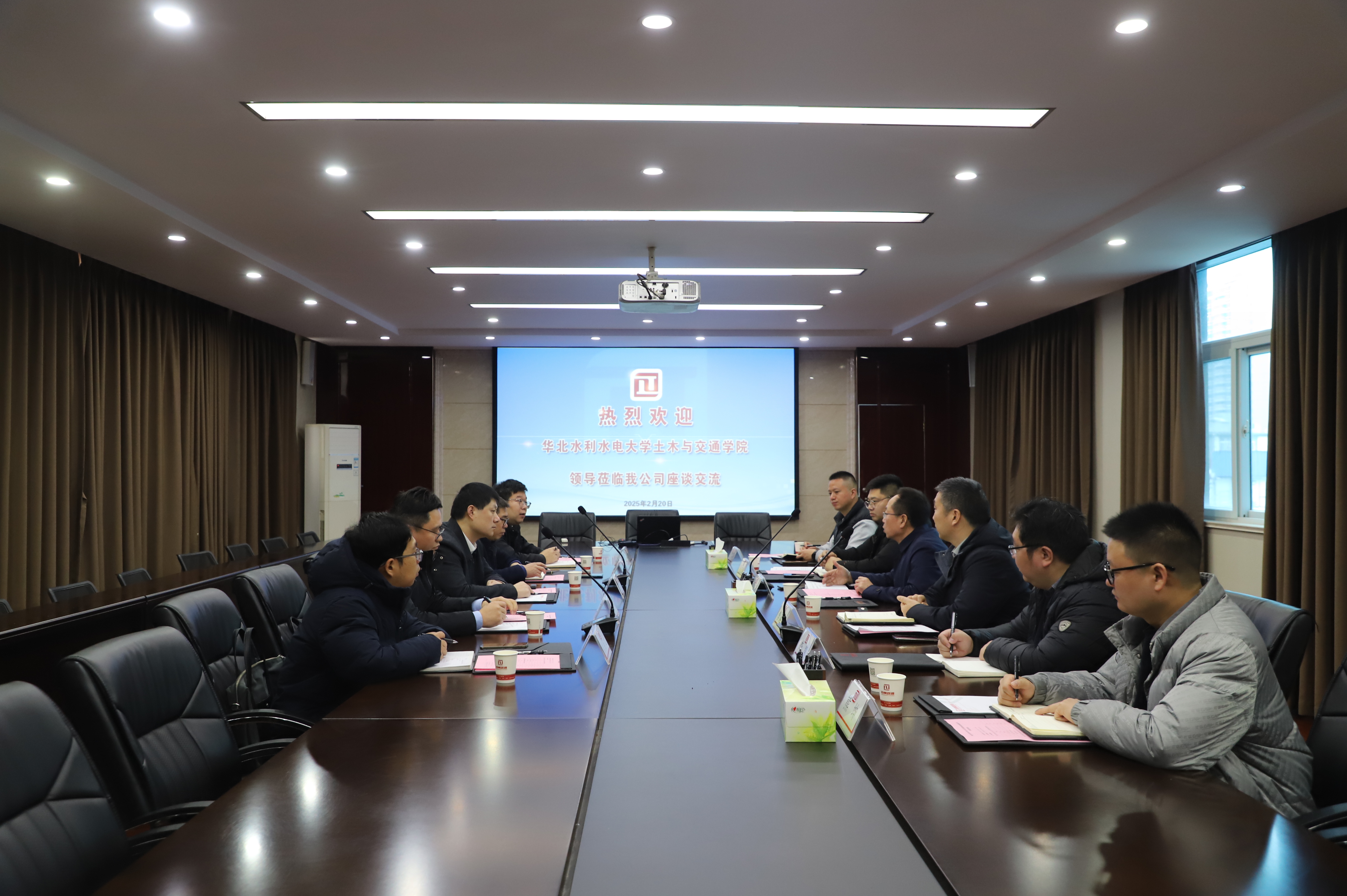 為進一步深化校企合作,實現(xiàn)校企共建雙贏,2025年2月20日,華北水利水電大學土木與交通學院院長汪志昊一行赴我公司開展座談交流。公司黨委書記、董事長胡香凱,黨委委員、總工程師李運富,總工辦副主任馬志峰、安全法務部副部長李凱以及發(fā)展分公司副經(jīng)理許光輝陪同座談。