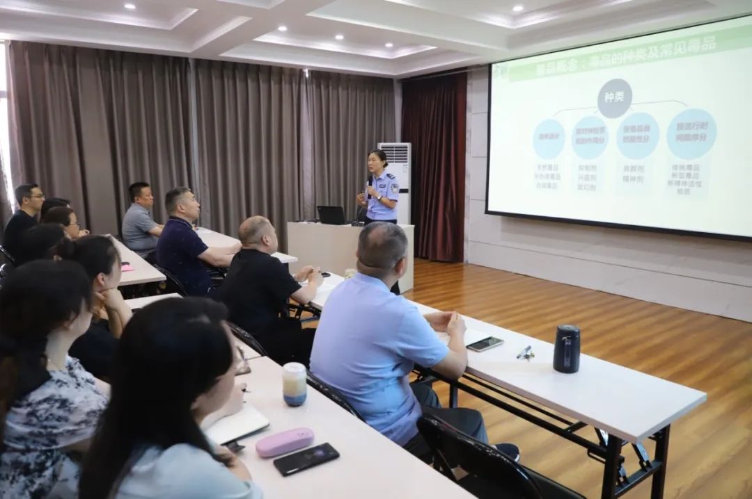 活動特別邀請了“豫戒先鋒”河南司法行政禁毒宣傳志愿服務(wù)隊石佛強制隔離戒毒所禁毒民警李明作專題輔導(dǎo)。李警官結(jié)合多年工作經(jīng)驗,通過圖片、視頻資料等,系統(tǒng)講解了常見毒品及新型偽裝毒品的種類、特征、巨大危害及成癮機制,深刻揭露了毒品犯罪的手段與陷阱,并傳授實用防范技巧;顒蝇F(xiàn)場特別設(shè)置仿真毒品模型展示區(qū)。黨員干部通過近距離觀察各類毒品(特別是極具迷惑性的新型偽裝毒品)仿真模型,有效提升了毒品辨識能力。